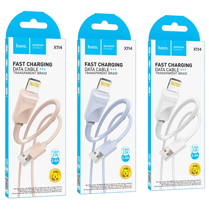 Кабель USB - 8 pin HOCO X114 Energy, 1.0м, круглый, 2.4А, ПВХ, цвет: белый (1/31/310)