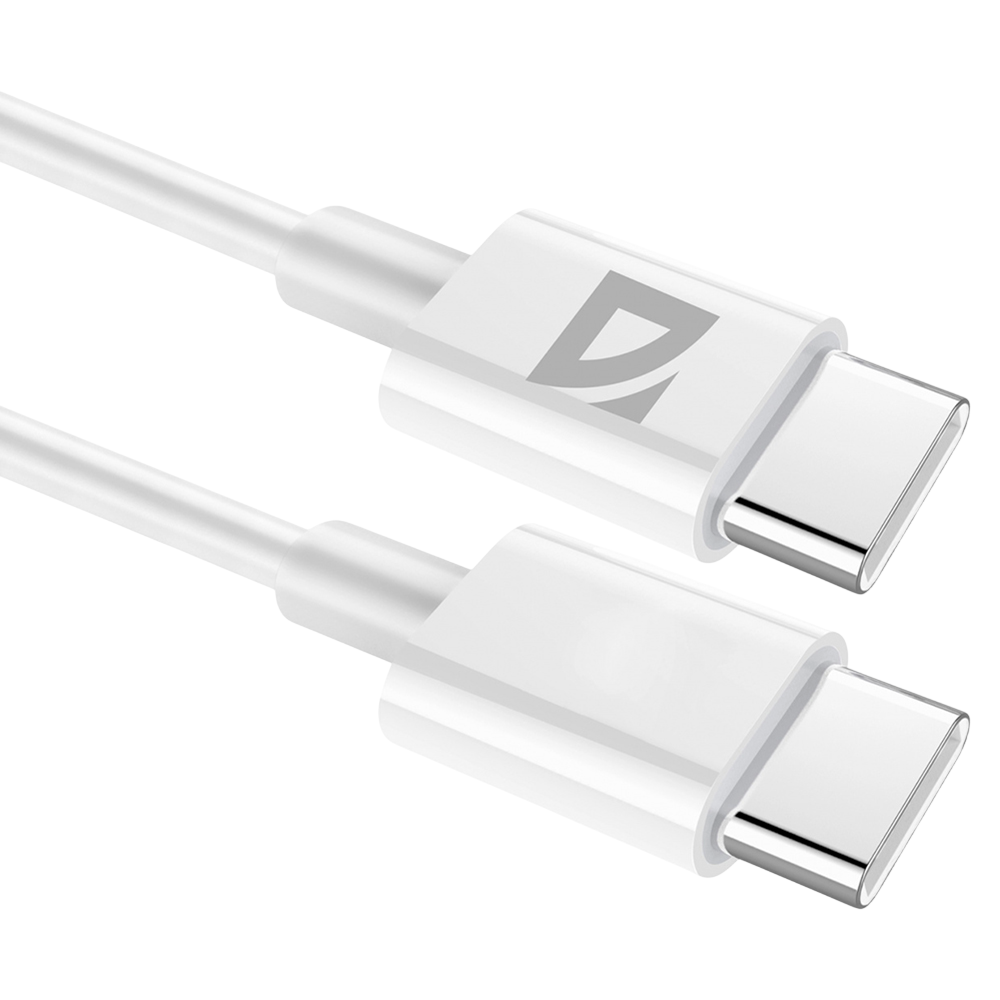 Кабель DEFENDER F182 TypeC-TypeC 1м, 60 Вт, PD,TPE,белый, пакет (1/100)
