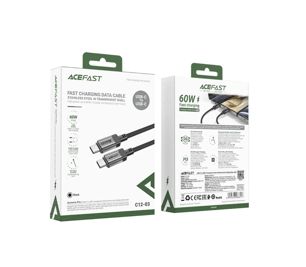 Кабель TypeC - TypeC ACEFAST C12-03 (черный) 1.2м