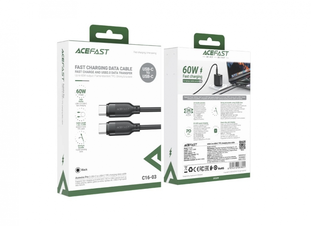 Кабель TypeC - TypeC ACEFAST C16-03 (черный) 1.2м