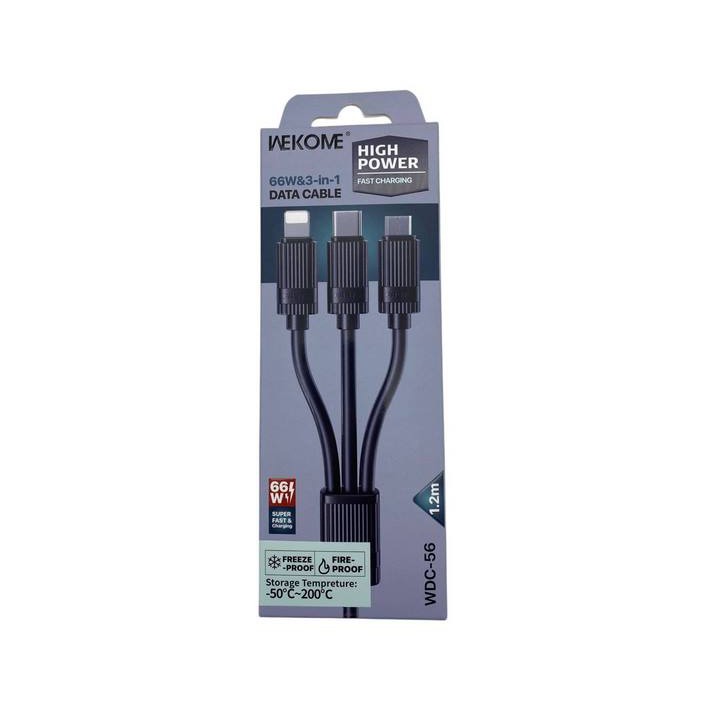 Кабель USB - 3 в 1 (Lightning + MicroUSB + Type-C) WEKOME WDC-56 1.2m 66W (Незамерзающий) Черный