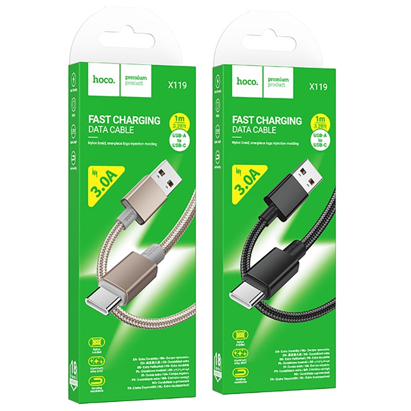 Кабель USB - Type-C HOCO X119, 1.0м, круглый, ткань, 3.0A, цвет: золотой (1/1000)