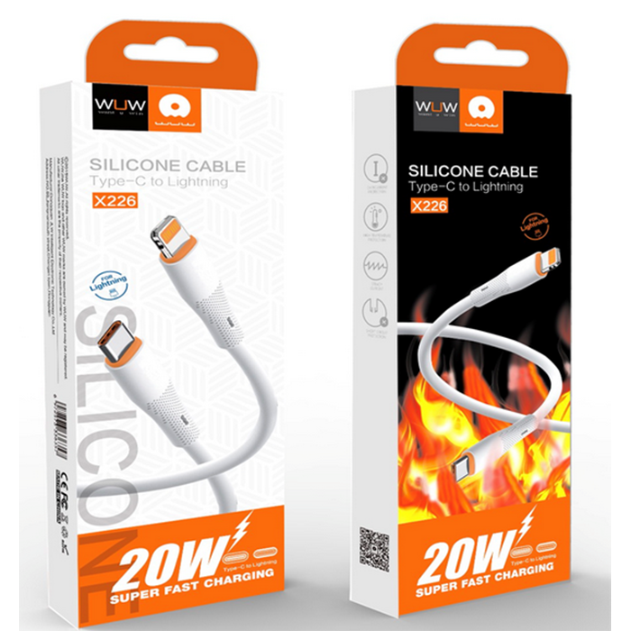 Кабель Type-C - Lightning (для iPhone) WUW X226 1m PD 20W (Силиконовый Термостойкий) Белый