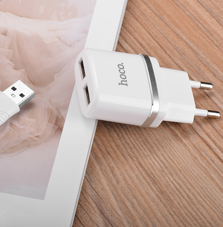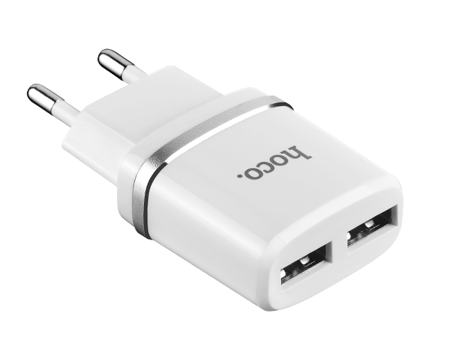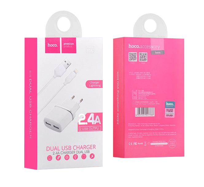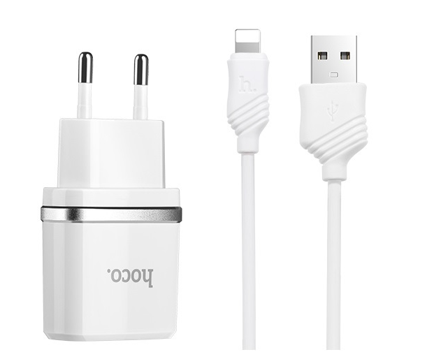 Адаптер Сетевой Hoco C12 2USB/5V/2.4A +lightning (white)