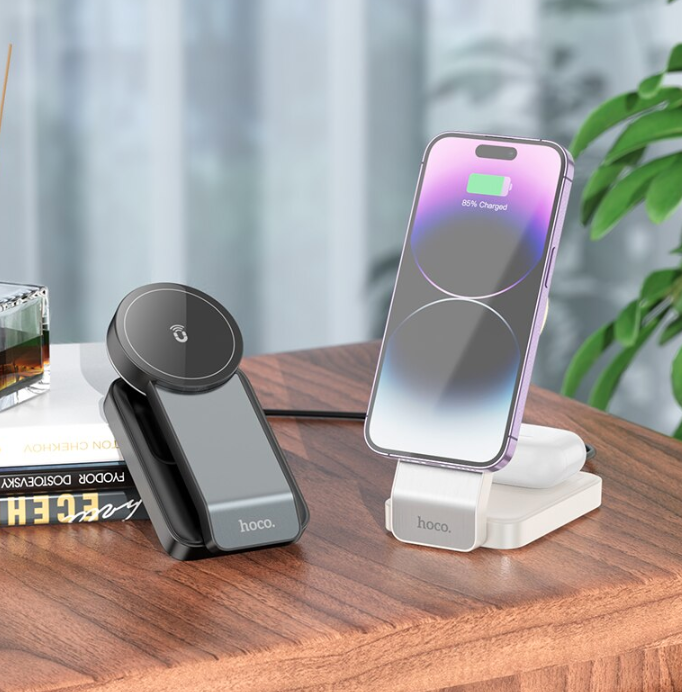 Беспроводное зарядное устройство HOCO CQ3 3в1 15W (черный)