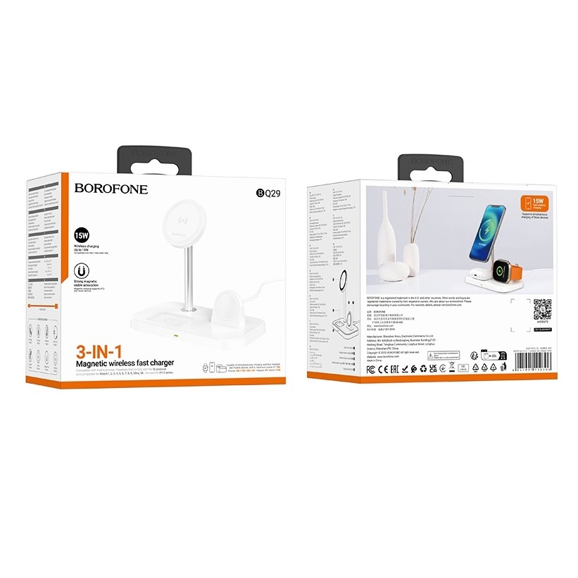 Беспроводная зарядка BOROFONE BQ29 3в1 (белый)