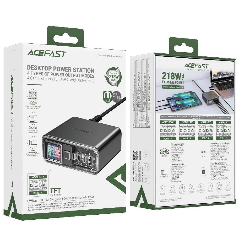 Сетевое зарядное устройство ACEFAST Z4 PD218W GaN (3C1A), настольный, цвет серый