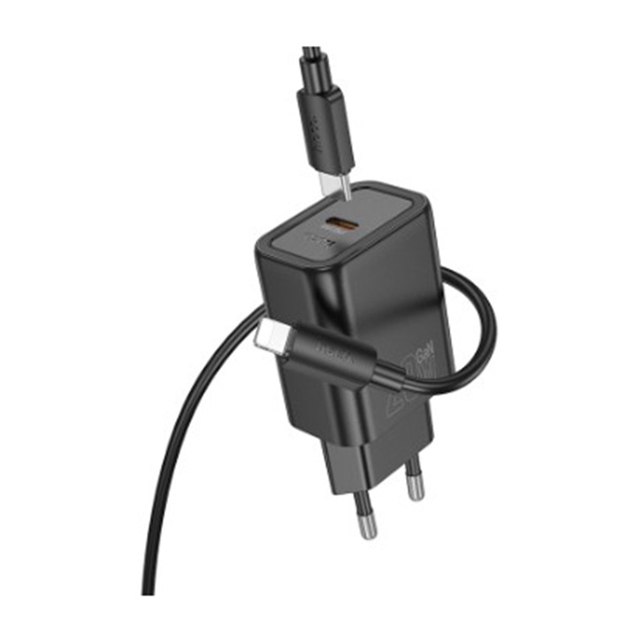 Сетевое зарядное устройство Hoco N60 PD20W +кабель Type-C/Lightning, цвет черный