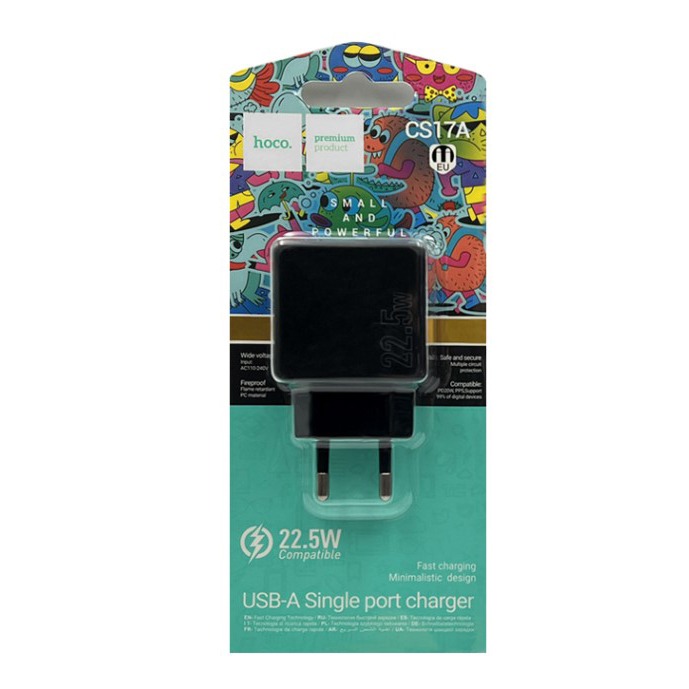 Адаптер сетевой Hoco CS17A (PD22,5W/QC/1USB) черный