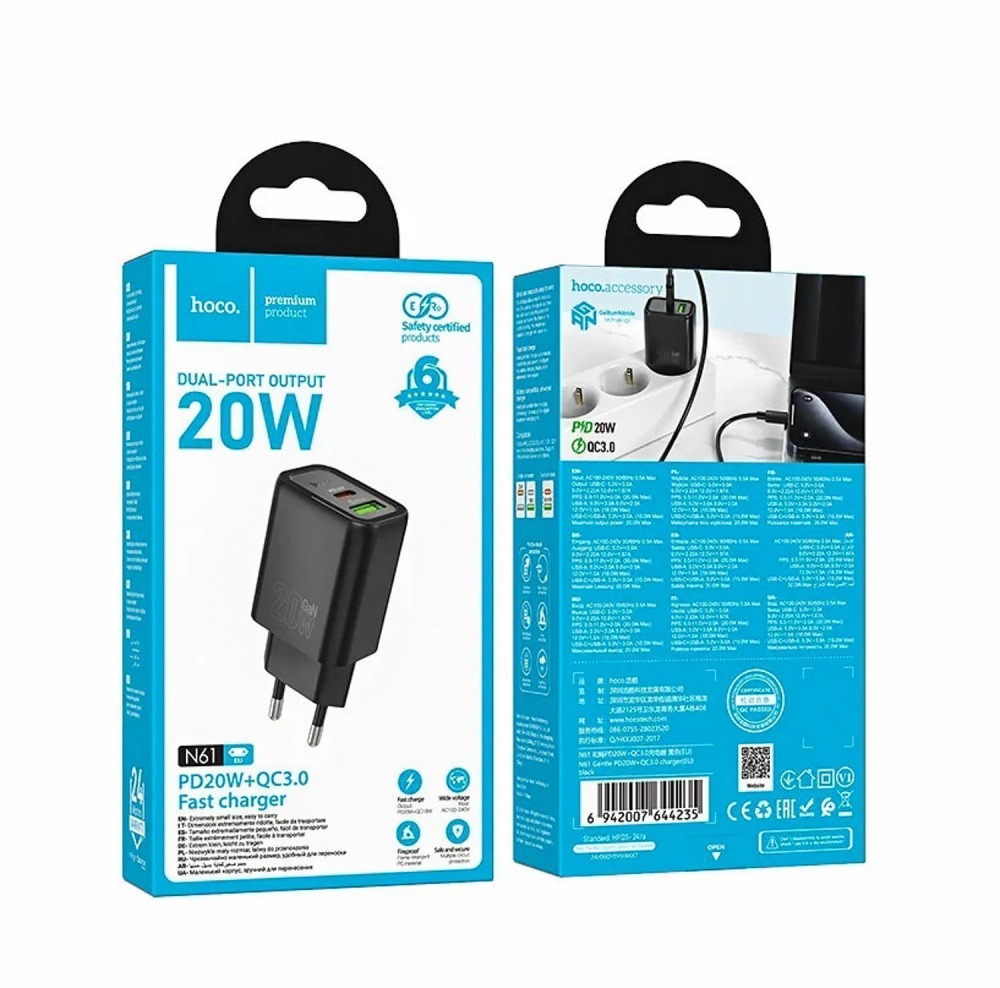 Адаптер Сетевой Hoco N61 Gentle PD20W+QC3.0 (black)