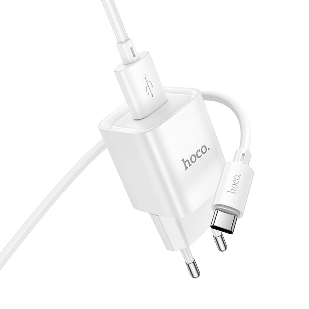 Адаптер Сетевой с кабелем Hoco C145A Charm USB 3A/18W (USB/Type-C) (white) (236008)