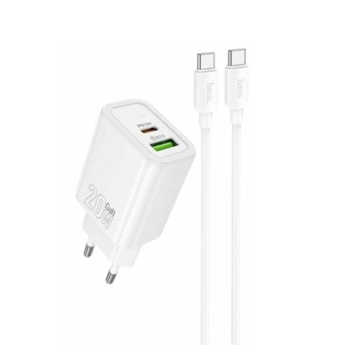 Адаптер Сетевой Hoco N61 Gentle PD20W+QC3.0 + кабель Type-C/Type-C (white)