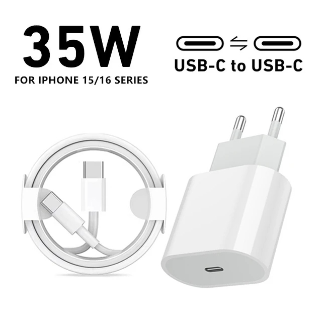 Сетевой адаптер питания USB-C 35W + кабель Type-C-Type-C 16 Pro Max с лого (белый)