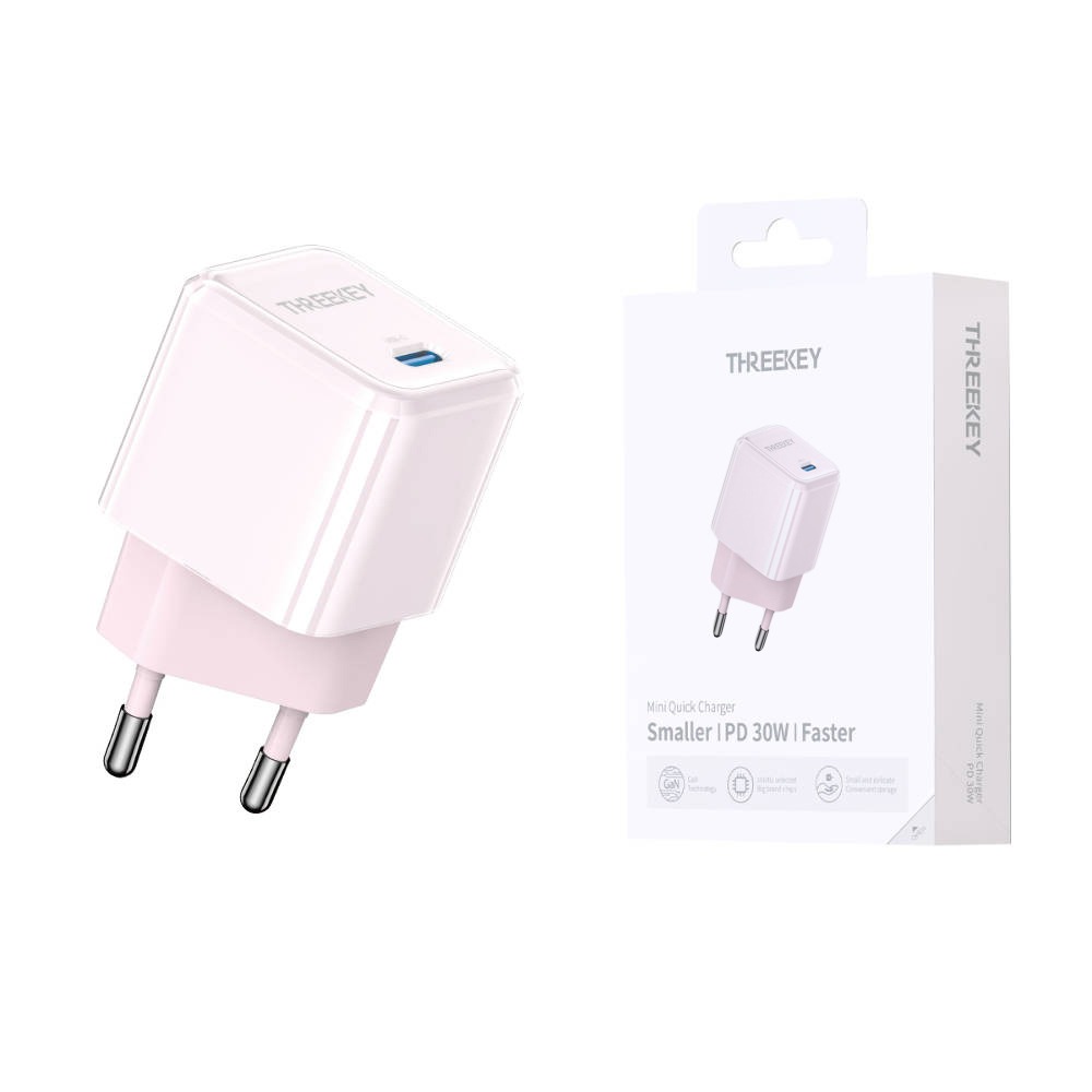 Сетевое зарядное устройство THREEKEY TK-116 GaN USB-C (30W), цвет розовый