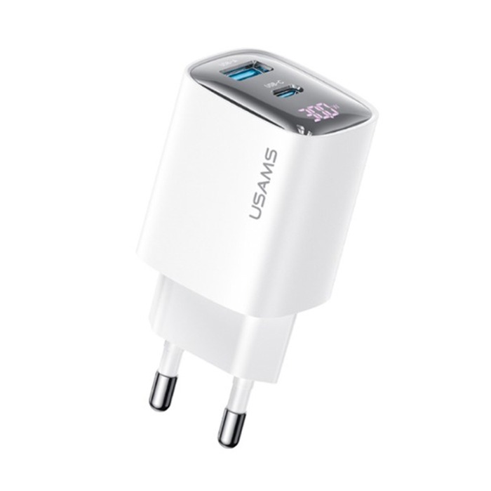 Сетевое ЗУ USAMS CC229 TC01 (USB QC3.0/PD 30W/дисплей) белое
