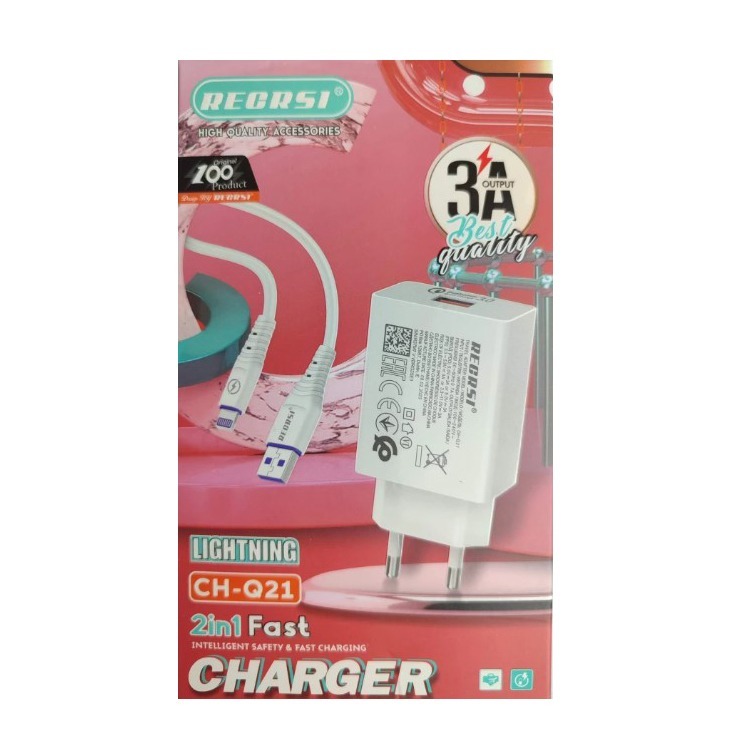 Сетевое ЗУ RECRSI CH-Q21 + кабель Lightning (USB QC3.0) белое