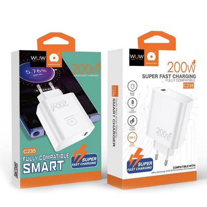 Сетевое зарядное устройство Type-C WUW C235 (1Type-C PD 200W для Xiaomi Samsung Huawei и др.) Белый