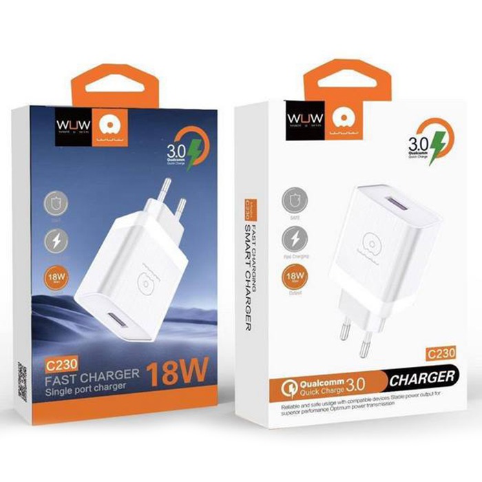 Сетевое зарядное устройство USB WUW C230 (1USB 18W QC3.0) Белый