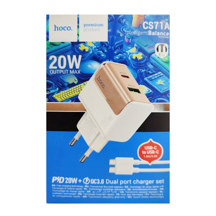 Сетевое ЗУ HOCO CS71A + кабель Type-C/Type-C (USB CQ3.0/PD 20W) белое