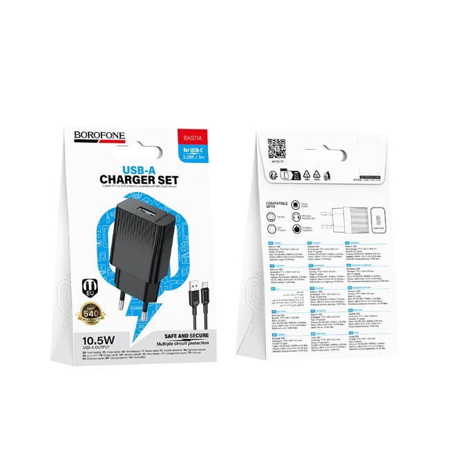 Сетевой адаптер питания BOROFONE BAS71A + кабель Type-C (черный)