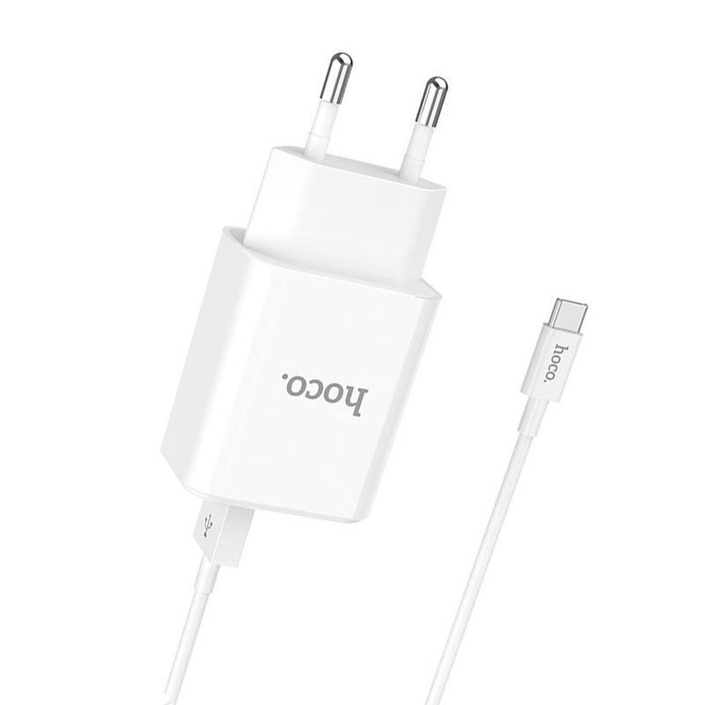 Адаптер Сетевой с кабелем Hoco C62A Victoria(повр. уп. ) 2USB 2,1A/10W (USB/Type-C) (white) (241317)