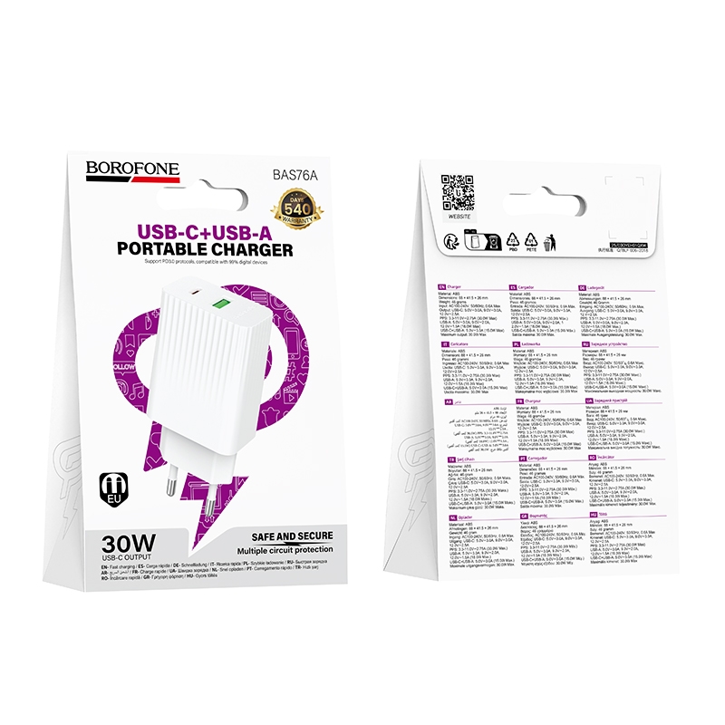 Адаптер сетевой BOROFONE BAS76A PD30W + QC 3.0 (белый)