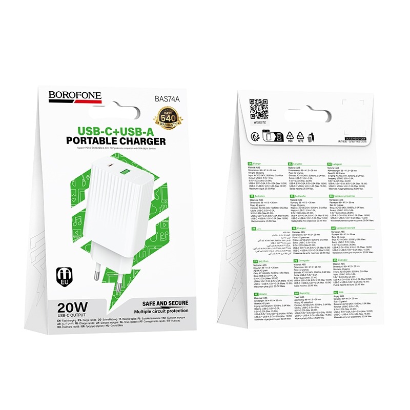 Сетевой адаптер питания BOROFONE BAS74A PD20W + QC 3.0 (белый)