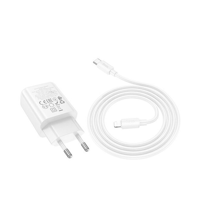 Блок питания сетевой 1 Type-C HOCO N62 Gentle, 3.0A, PD30Вт, кабель Type-C - 8 pin, цвет: белый (1/12/120)