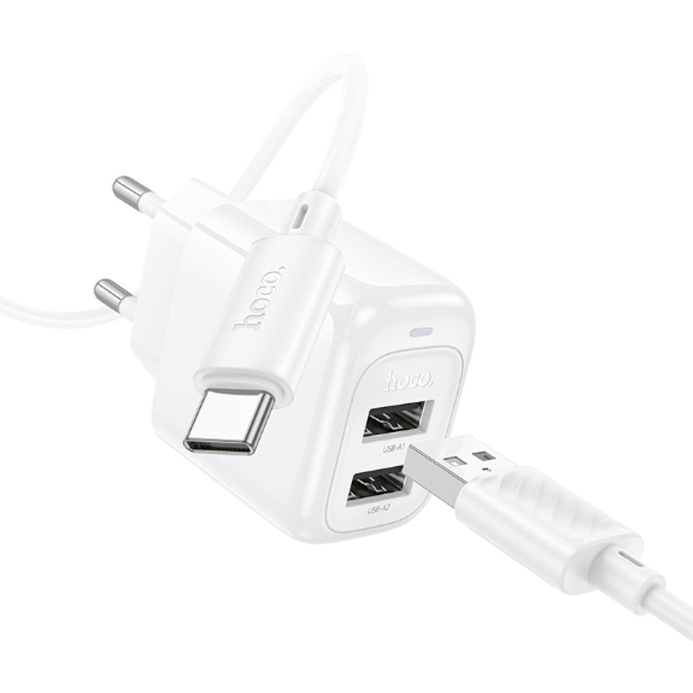 Сетевое ЗУ HOCO CS51A + кабель Type-C (2USB/2.4A) белое