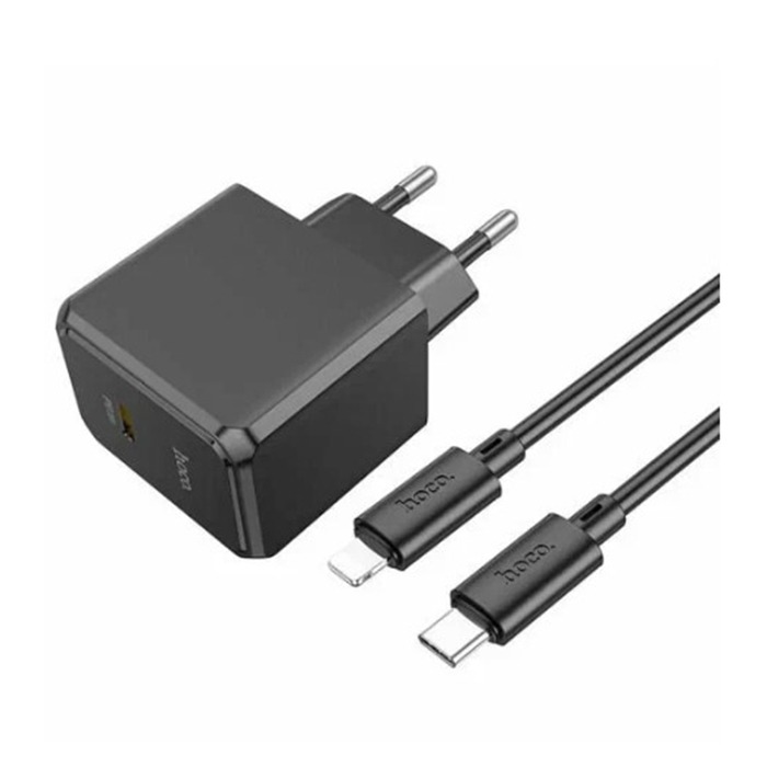 Блок питания сетевой 1 Type-C HOCO CS13A Ocean, PD20Вт, QC3.0, кабель Type-C - 8-pin, цвет: чёрный (1/28/168)