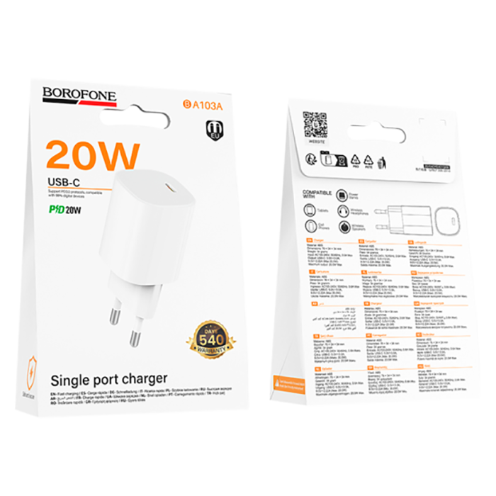 Сетевое З/У Borofone BA103A Type-C 20W белый (1/20/120)