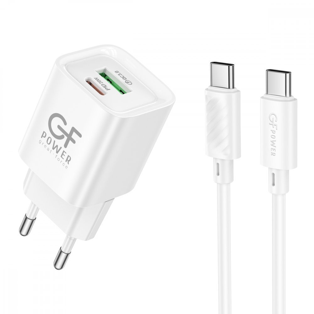 Сетевое З/У GFPower S73PQ-TT 1USB+1Type-C 20W PD,QC с кабелем Type-C белый (1/30/180)