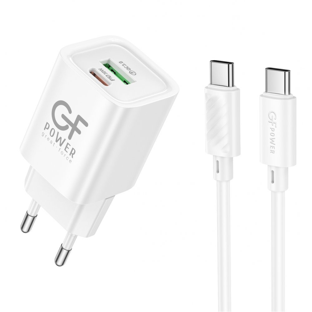Сетевое З/У GFPower S75PQ-TT 1USB+1Type-C 30W QC3.0 с кабелем Type-C белый (1/30/180)