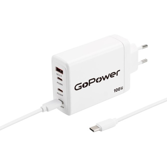 Сетевое З/У GoPower GPQC100 1USB+3Type-C 100W с кабелем Type-C/Type-C белый