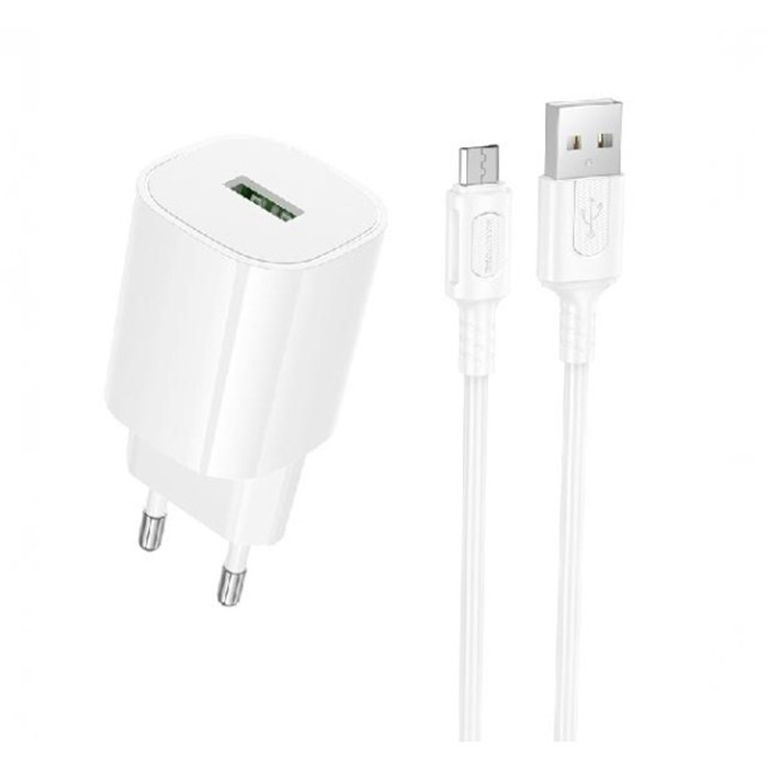 Сетевое ЗУ BOROFONE BA102A + кабель Micro USB (USB QC 3.0/18W) белое