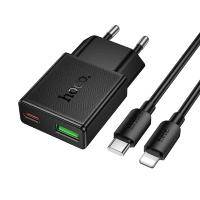 Адаптер Сетевой с кабелем Hoco N73 Mini PD+QC3.0 USB/Type-C 20W (Type-C/Lightning) (black) (242974)