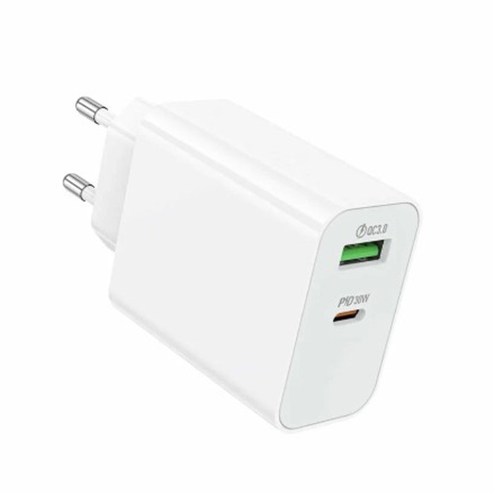 Адаптер сетевой Borofone BA108A (30W, QС3.0, PD, 2 порта) Белый