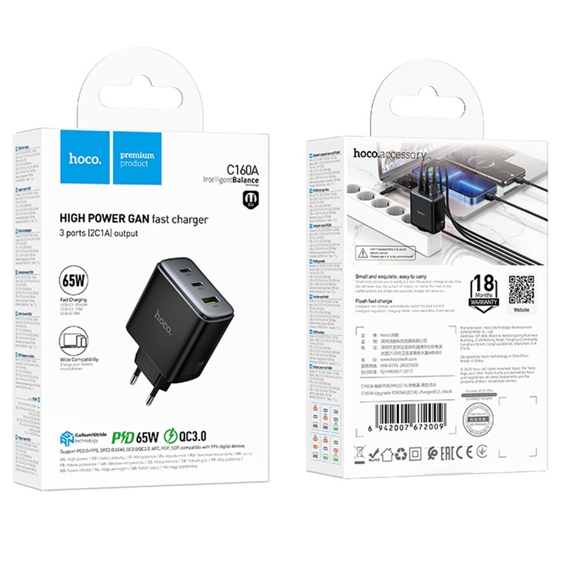Адаптер сетевой Hoco C160A PD65W (2C1A) черный