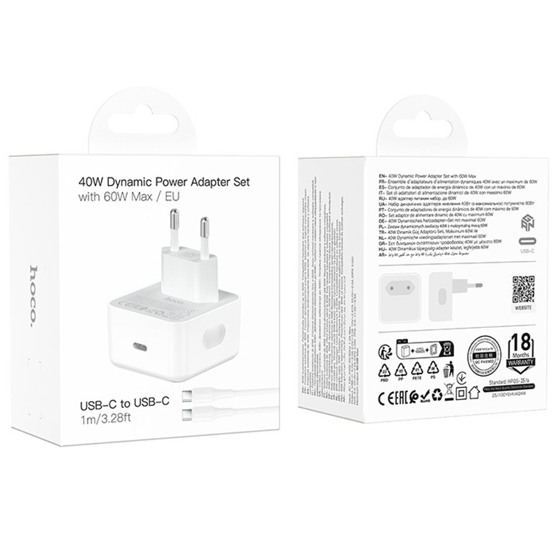 Сетевое зарядное устройство Hoco C161A, 40W + кабель Type-C/Type-C, цвет белый