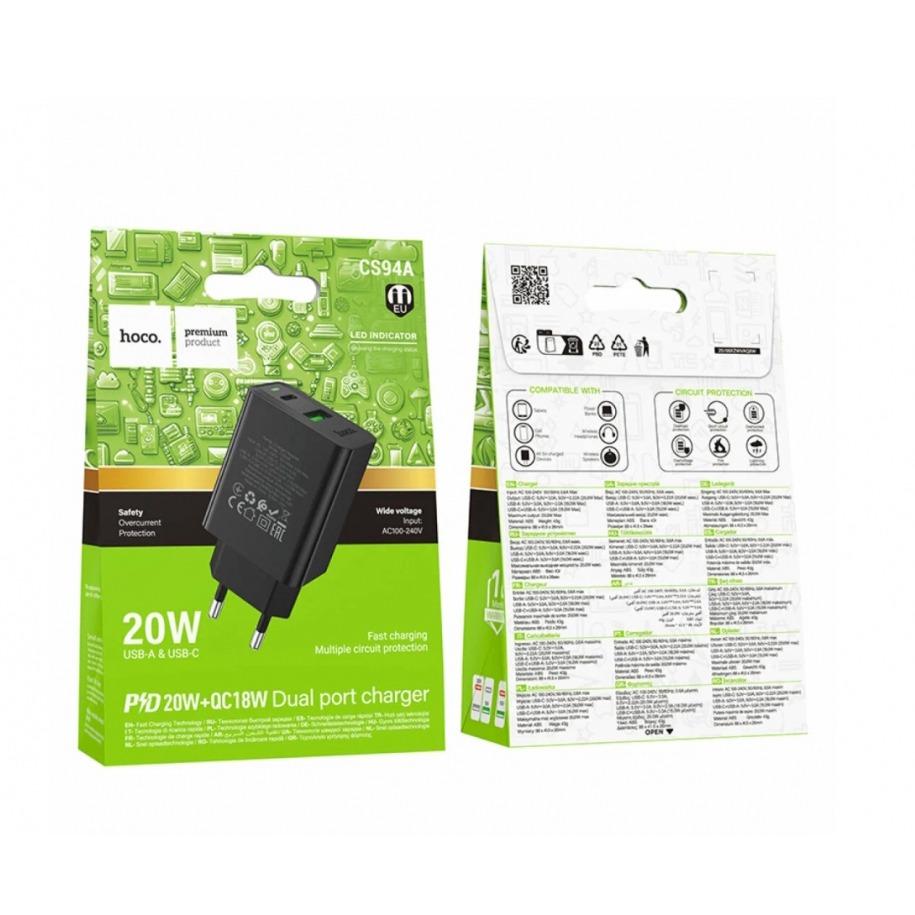 Сетевой адаптер питания HOCO CS94A QC3.0 PD 20W (черный)