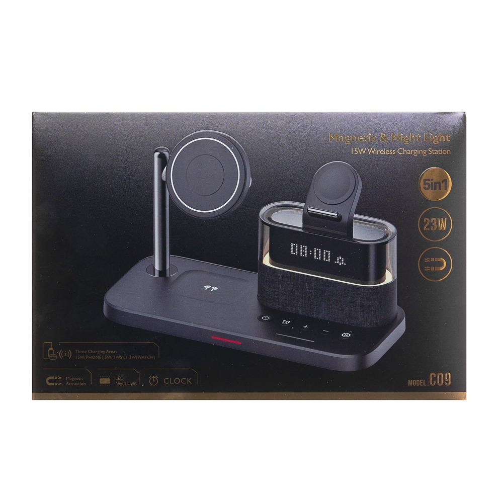 ЗУ Сетевое Беспроводное - C09 SafeMag 5-in-1 с часами (black) (243677)