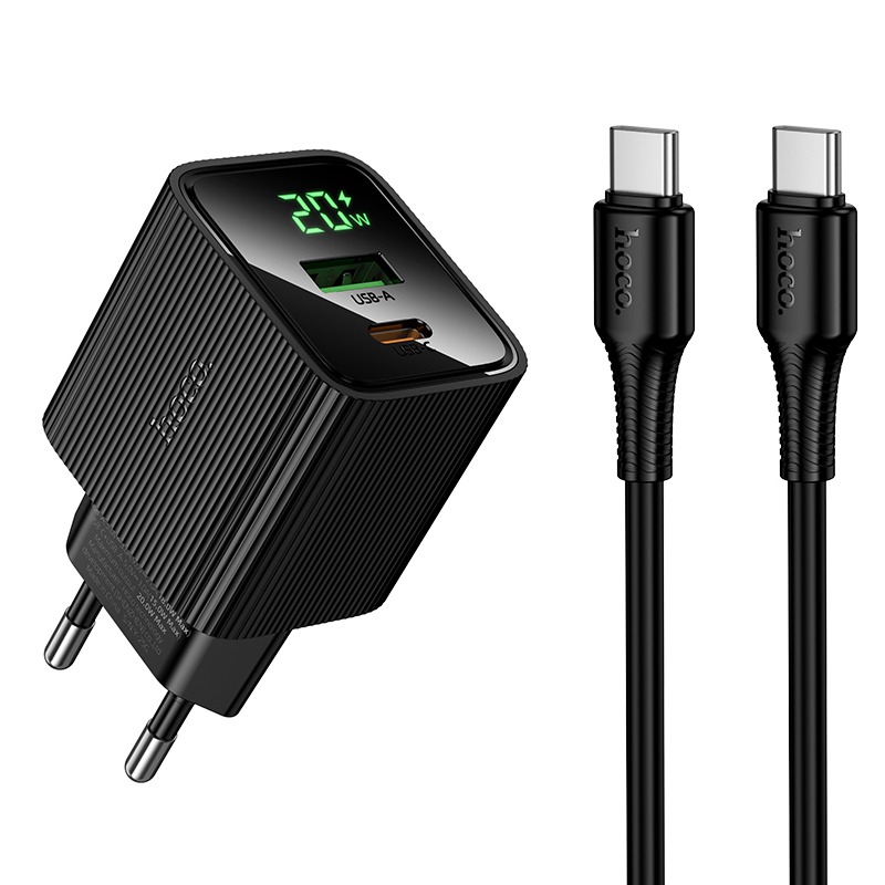 Блок питания сетевой 1 USB, 1 Type-C HOCO CS83A Excellent, 3.0A, PD20Вт, кабель Type-C - Type-C, цвет: черный (1/18/180)