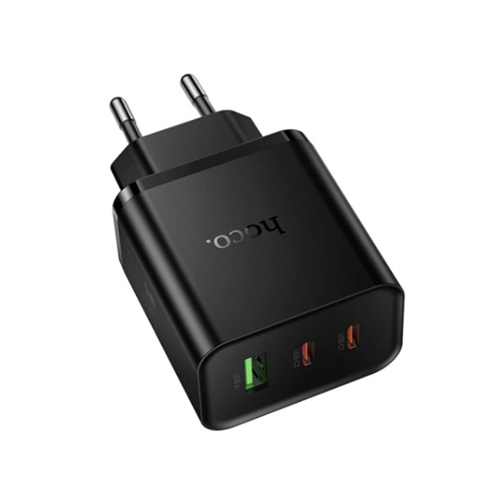 Сетевое зарядное устройство USB/Type-C Hoco N75 (65W, QC3.0, PD, 3 порта) Черный