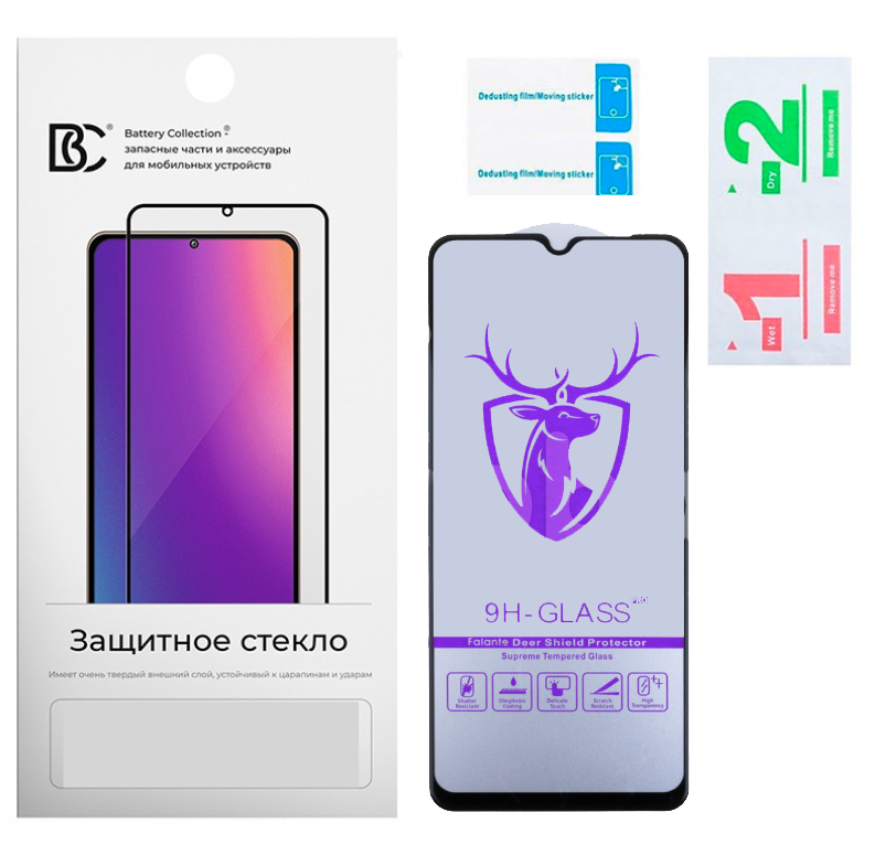 Защитное стекло "Премиум" для Xiaomi Redmi 10C/12C/Poco C40/C55 Черный