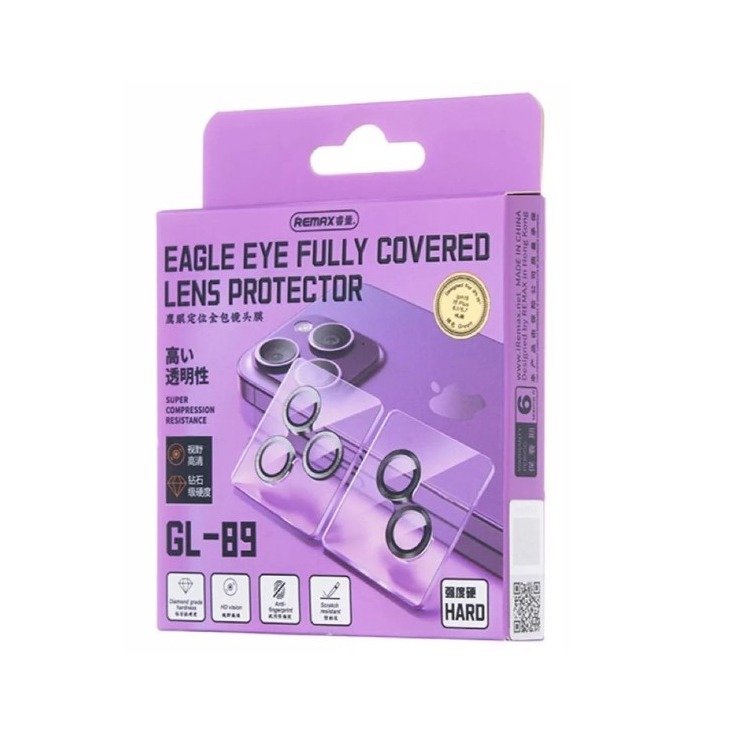 Защитное стекло линзы камеры Remax GL-89 для iPhone 15 Pro/15 Pro Max (комплект 3 шт.) Черный