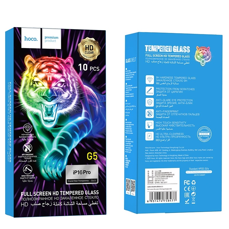 Защитное стекло Hoco G5 IPhone 16 Pro Max, полноразмерное, 3D, цвет черный (10)