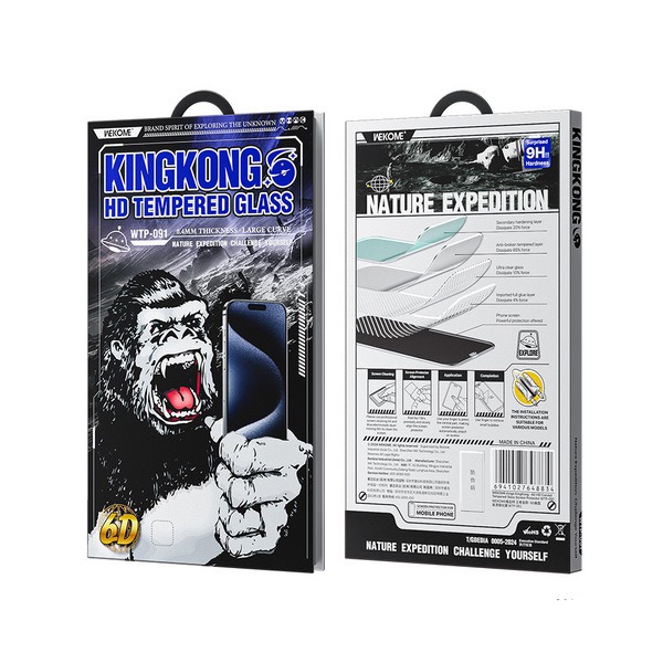 Защитное стекло iPhone 15 Pro Max WEKOME WTP-091 (King Kong 6D HD 0.4mm) в упаковке Черное