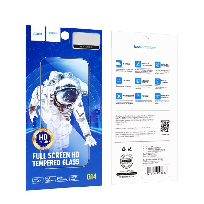 Защитное стекло Hoco G14 IPhone 13/13 Pro/14/16E, полноразмерное, 3D, цвет черный (10)