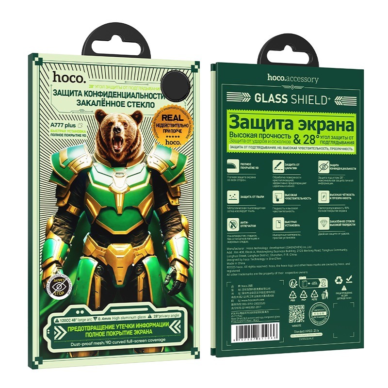Защитное стекло iPhone 11/XR HOCO A777 Bear АНТИШПИОН черное