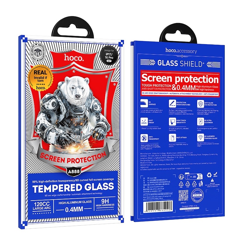 Защитное стекло Hoco A888 iPhone 16 Pro/17, ударопрочное, цвет черный